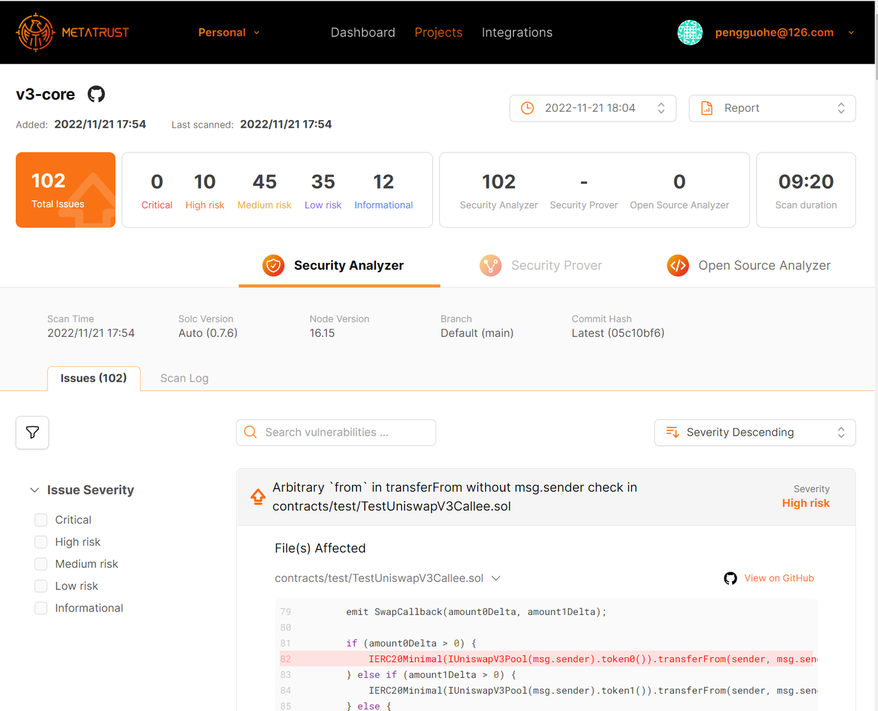 **Step 02:** For scanned projects, users can click on the name of any engine on the left to navigate to the specific details page to check the detail.